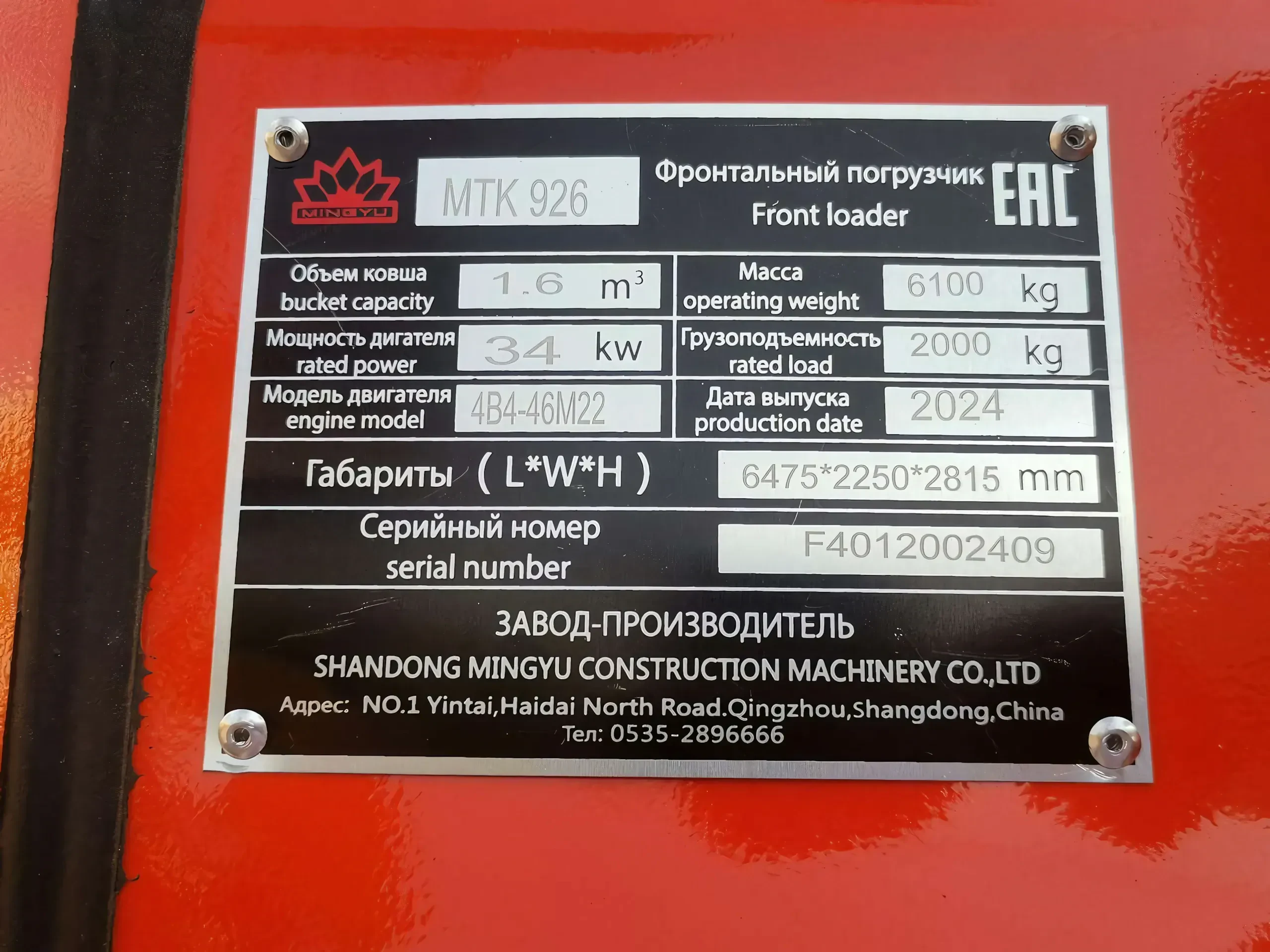 Фронтальный погрузчик МТК 926